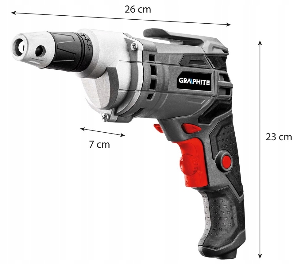Современная сетевая дрель-шуруповерт марки GRAPHITE высокой мощностью 520 Вт. Устройство отличается возможностью регулировки вращения посредством блокировки переключателя и уровня давления переключателя. Максимальная достигаемая ими скорость составляет 4200 оборотов в минуту.
