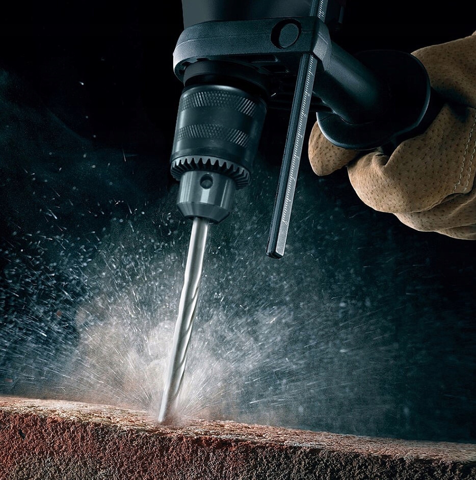 - Двигатель мощностью 750 Вт обеспечивает высокую производительность сверления.