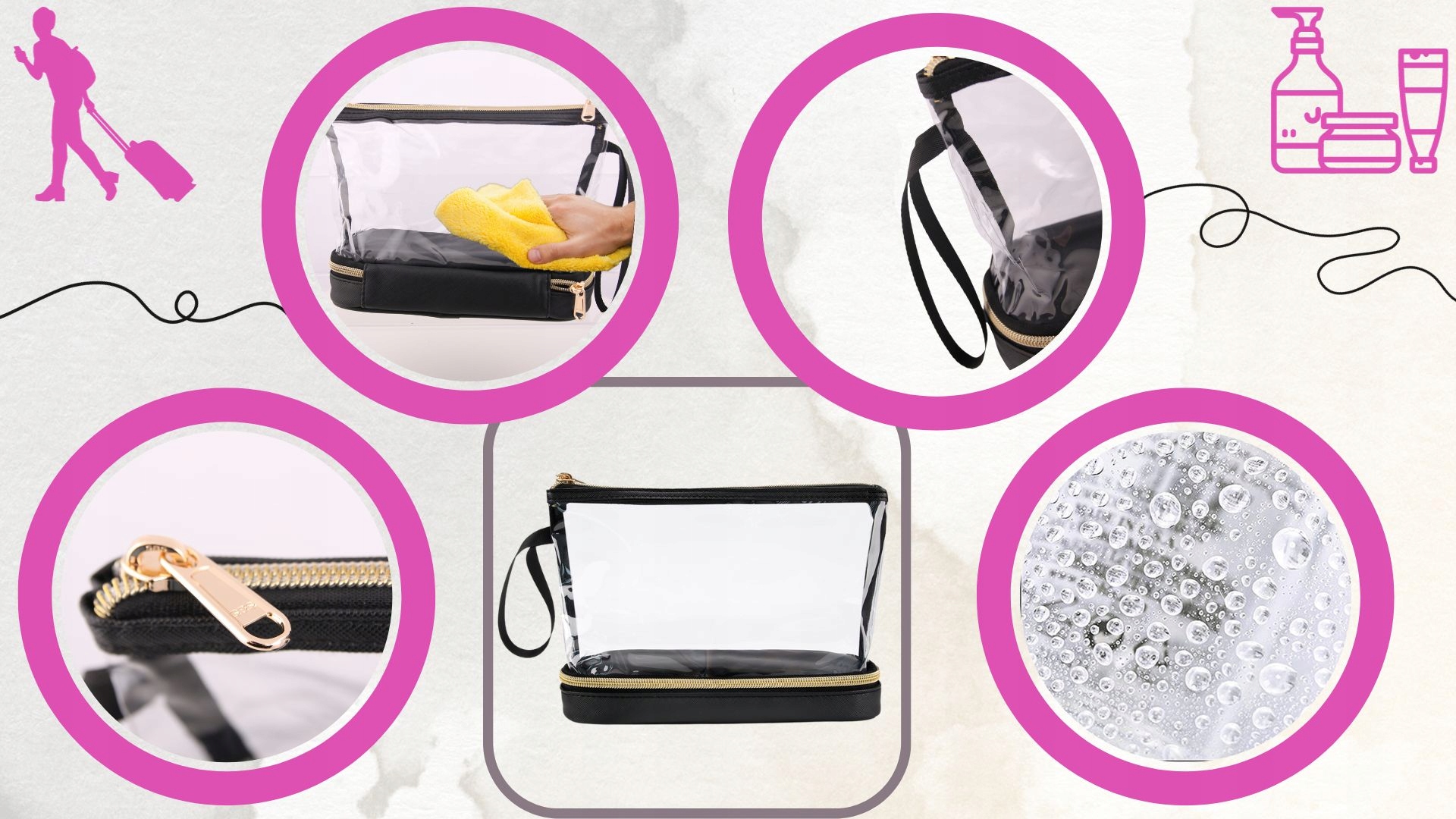 - ✅Прозрачный дизайн - поможет вам контролировать беспорядок в ванной и хранить все самые важные продукты в одном месте. Будет особенно полезна в путешествии, ускоряя досмотр багажа в аэропорту!