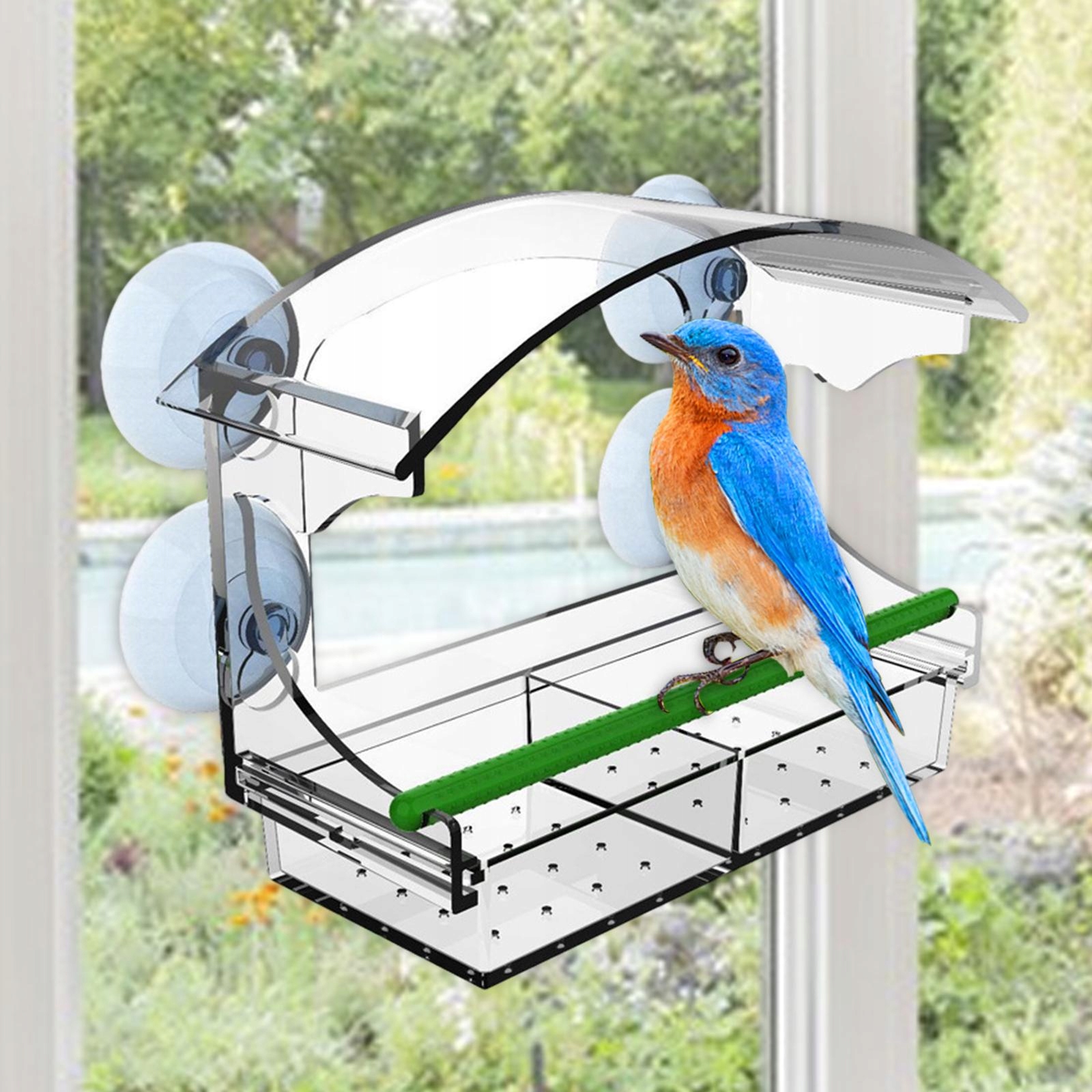 [Уникальный дизайн] Прозрачная кормушка для птиц имеет оконную конструкцию, что облегчает наблюдение за птицами и доставляет больше удовольствия.