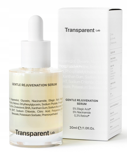 ингредиенты (inci) : аква (вода), пропаниол, глицерин, ниацинамид, эллагиновая кислота, гидрогенизированный фосматидилхолин, ретинол, этилгексилглицерин, фитат натрия, фискатидилхолин, маннит, ликитин, черно BHA, ксантановая резинка, акрилаты натрия, сополимер, глюкозид дециль, BHT, хлорид натрия, лимонный кислоте, бензоат натрия, сорбат калия, феноксиэтанол