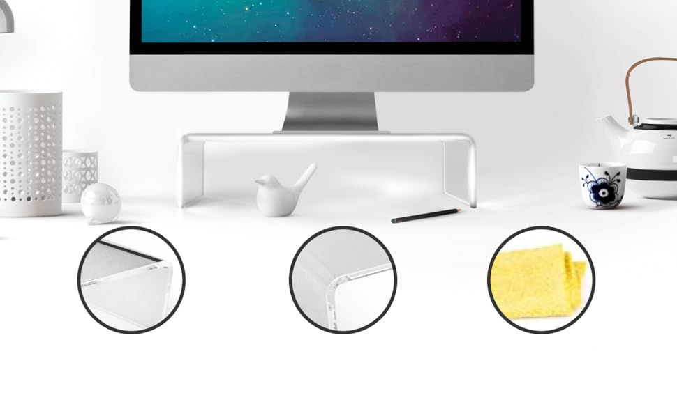 💻【Место для хранения】Элегантная акриловая подставка для монитора обеспечивает достаточно места для удобного хранения скрыть клавиатуру и мышь. Благодаря трудоемкой горячей гибке он не липкий.