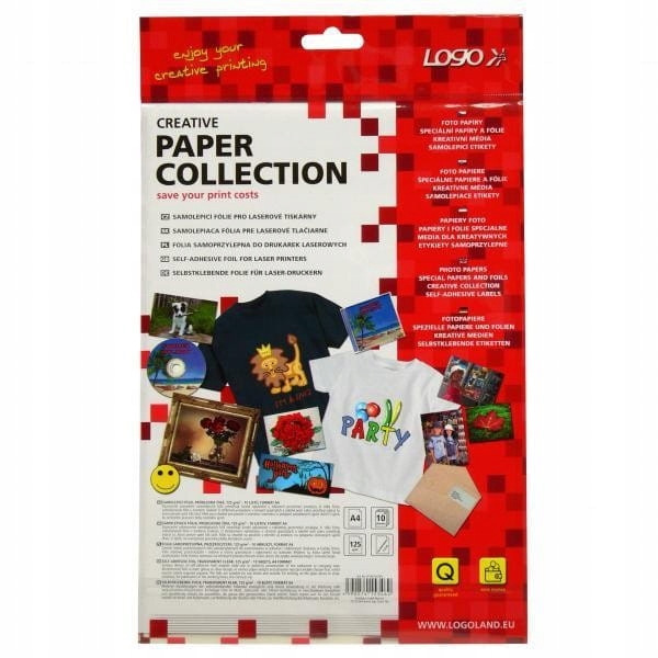 Прозрачная самоклеящаяся пленка предназначена для печати на всех цветных лазерных принтерах. Широко используется в деловых презентациях (например, публикация рабочего времени, контактов и т. д.). Клей прозрачный. Толщина фольги 72 г/м2, белая подложка 85 г/м2.
