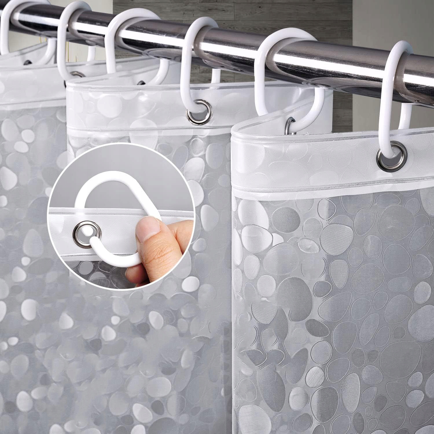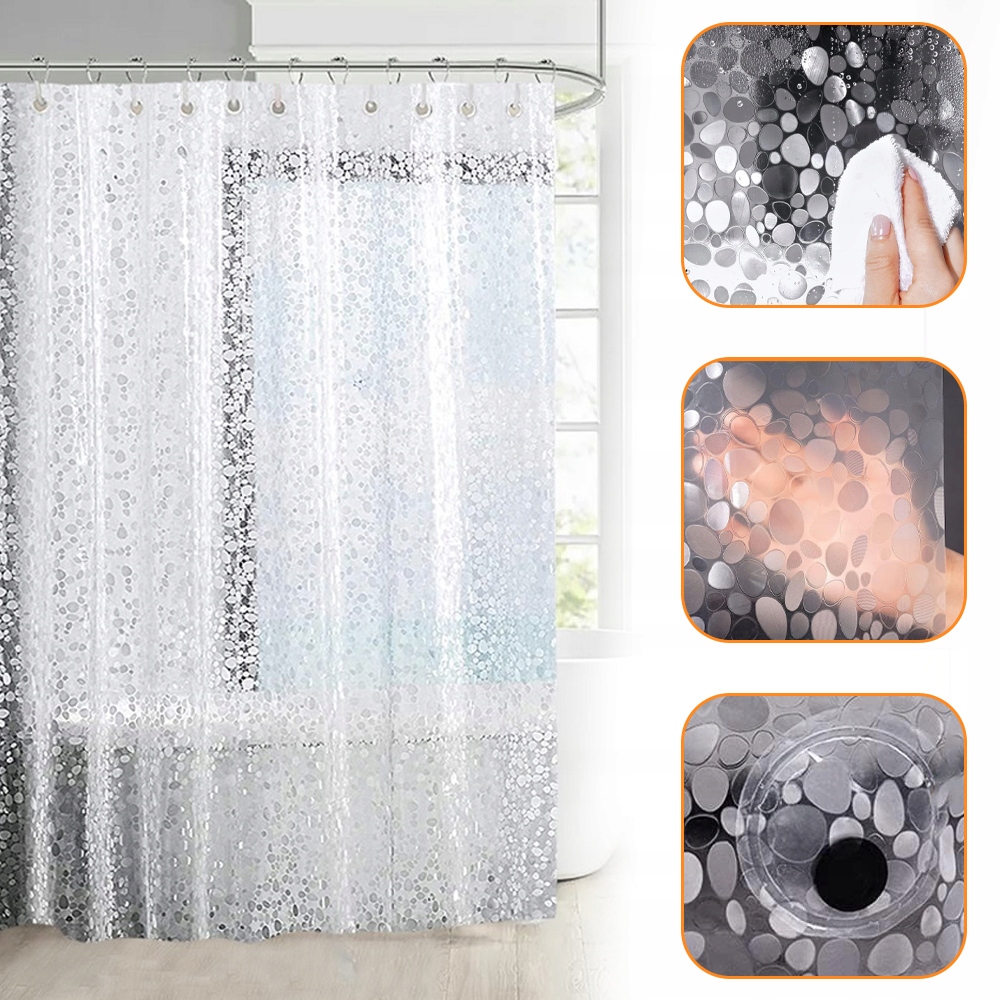 🚿🚿🚿【Высококачественный материал】 3D полупрозрачная занавеска для душа из гальки изготовлена из материала EVA, не содержит ПВХ и BPA. Высококачественный материал EVA обеспечивает противоплесневые и антибактериальные свойства, эффективно предотвращая рост плесени и бактерий. Полупрозрачный трехмерный узор из гальки хорошо защищает вашу конфиденциальность.