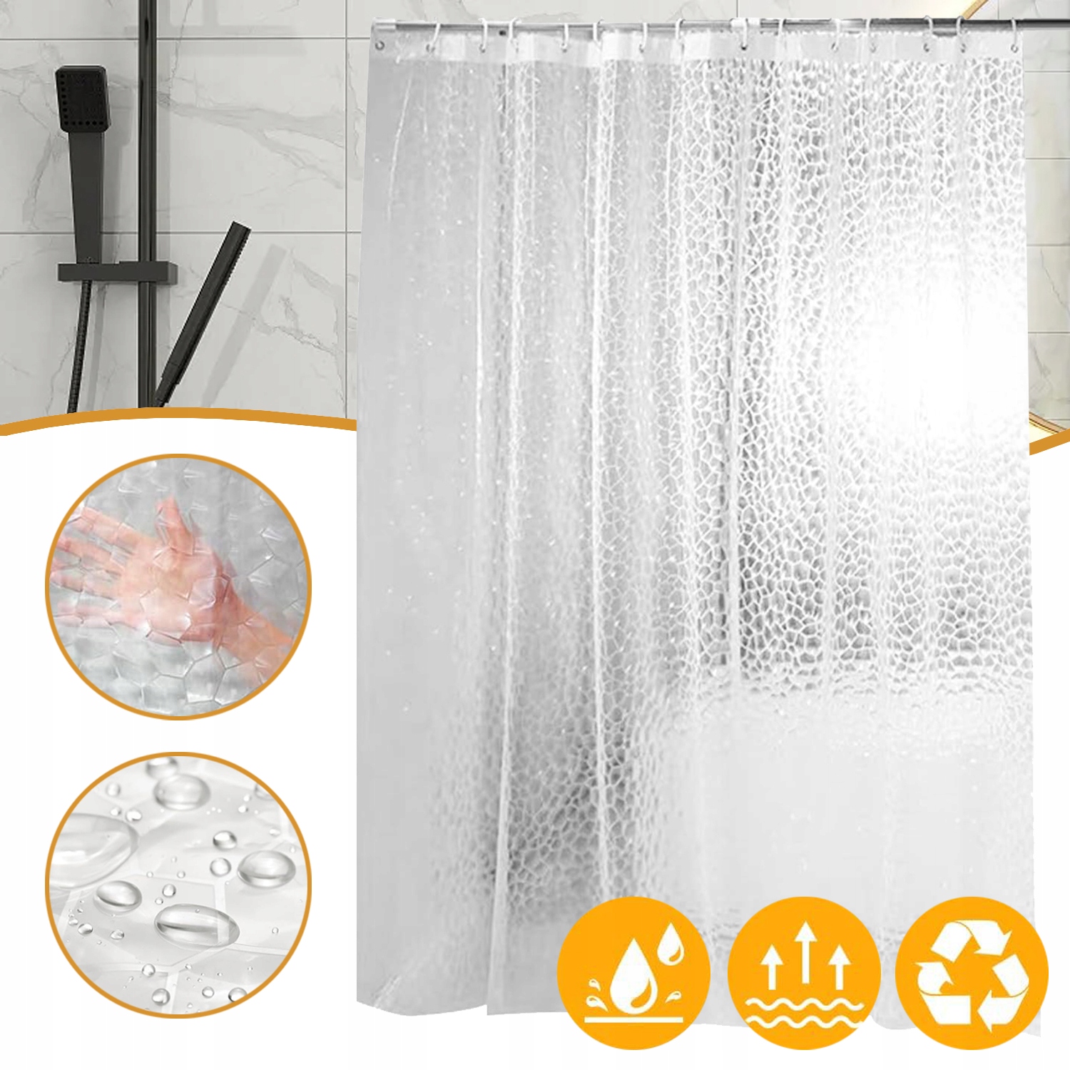 Прозрачная занавеска для душа с пеной EVA 12 крючков, 180 х 200 см.