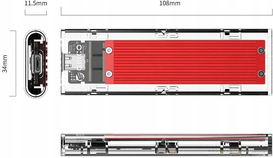 Прозорий футляр ORICO NVMe M.2 USB3.1 Type-C