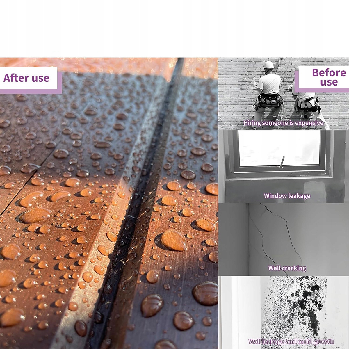 - 【Широкий спектр применения】 Невидимый водонепроницаемый герметик можно использовать для устранения трещин, просачивания подоконников, водонепроницаемого герметика для просачивания в туалете, протечек в стенах, протекает крыша и наружные стены.