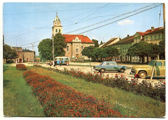 prószków :: rynek - Church ::: Старая открытка, с циркуляцией, с штампом