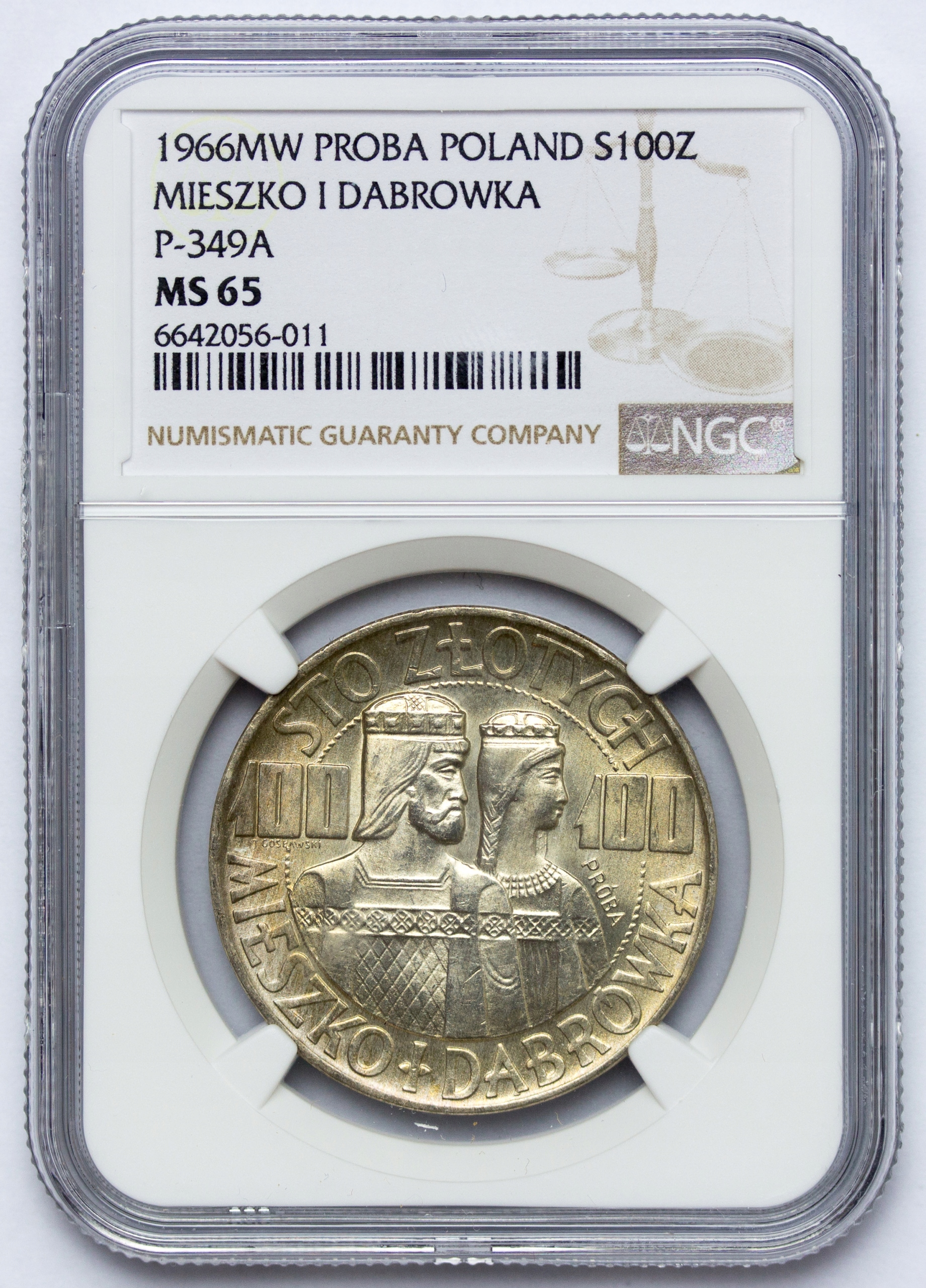 Пруф, PRL, 100 злотих 1966, Мєшко та Домбрувка, срібло, NGC MS65