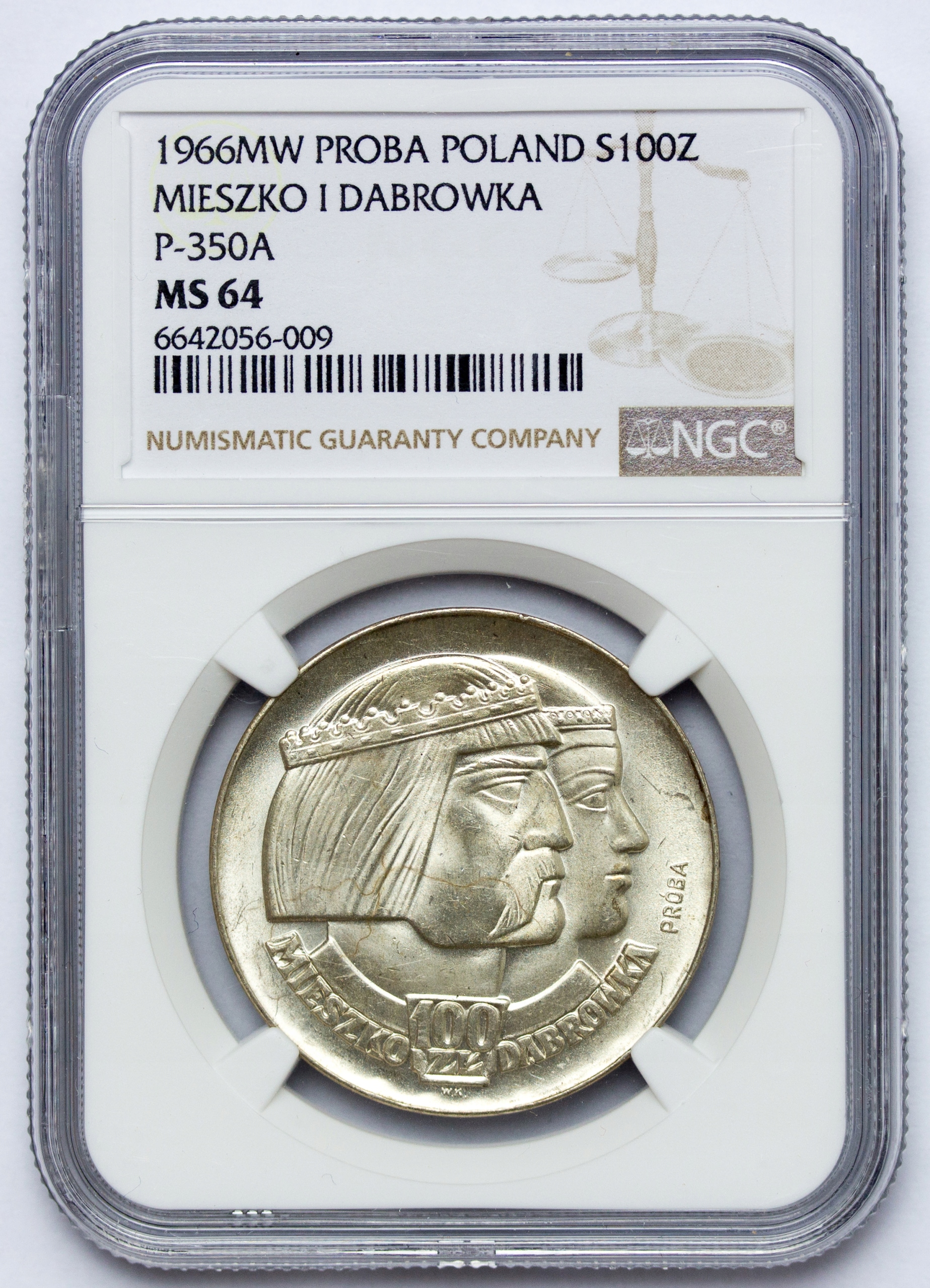 Пруф, PRL, 100 злотих 1966, Мєшко та Домбрувка, срібло, NGC MS64