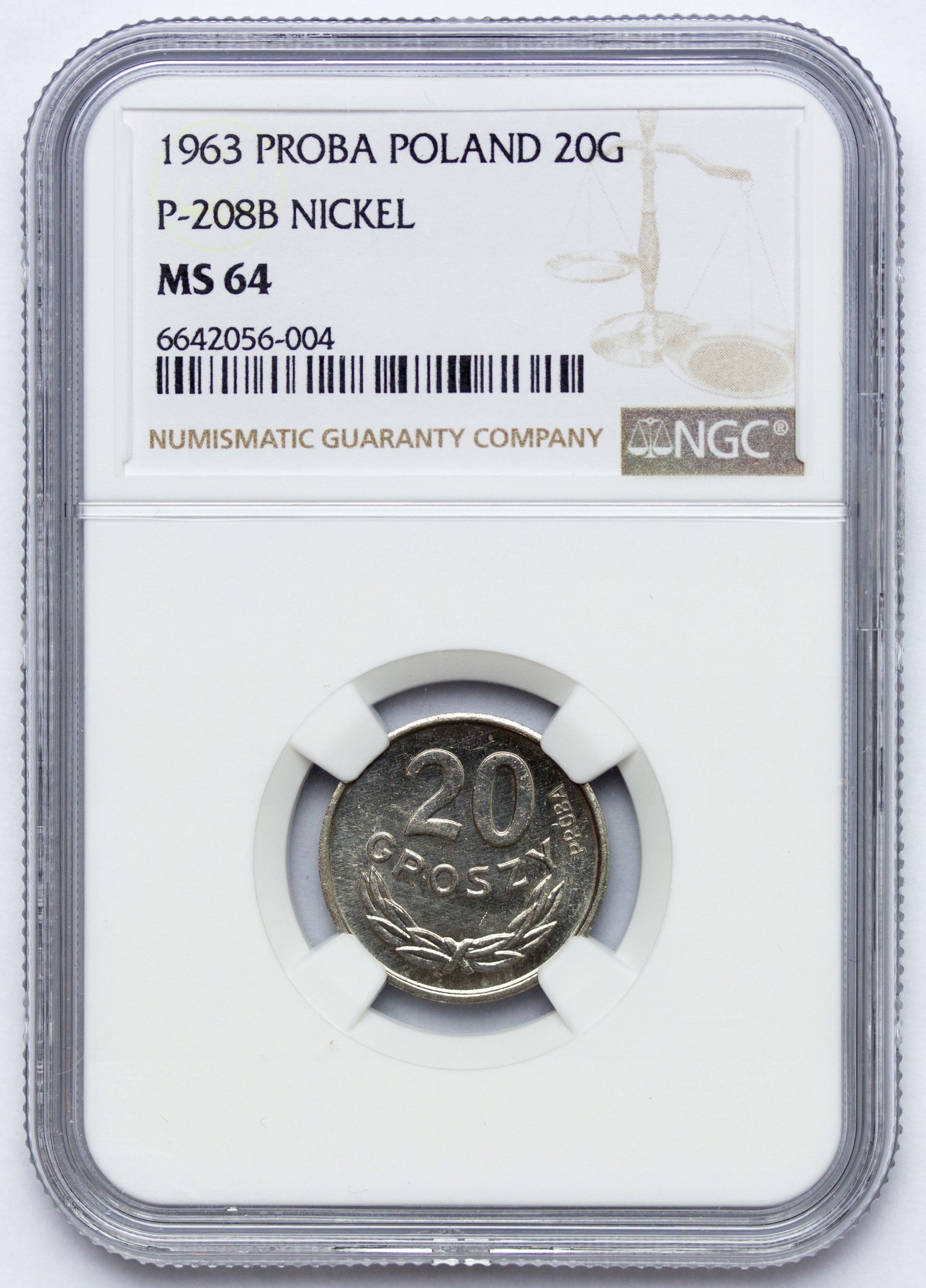 Пруф, PRL, 20 грошей 1963, нікель, NGC MS64