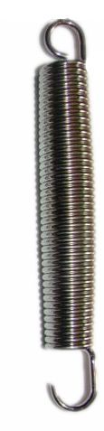 Рекомендую новые пружины для батутов разного диаметра, как на фотографиях ниже. Общая длина (с крючками) 18 см. Диаметр закаленной и хромированной проволоки 3 мм. Эти пружины очень устойчивы к растяжению и разрыву – 28 Н. Коническая структура, т.е. витки уменьшают диаметр на концах. Данная пружинная конструкция используется в профессиональных батутах.