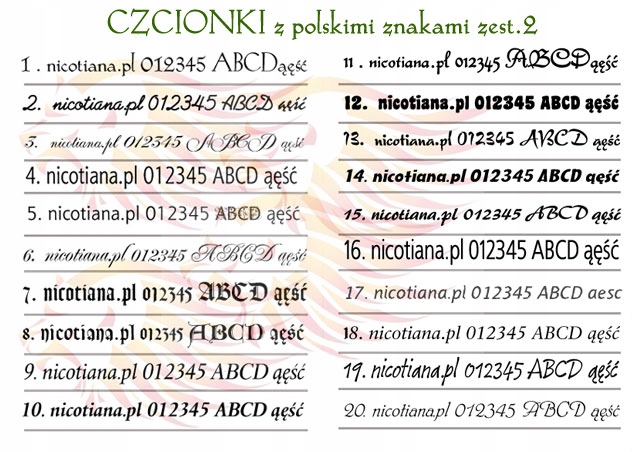 Ниже приведены некоторые основные шрифты с польскими символами, но мы также можем выгравировать надпись любым другим присланным или указанным шрифтом.