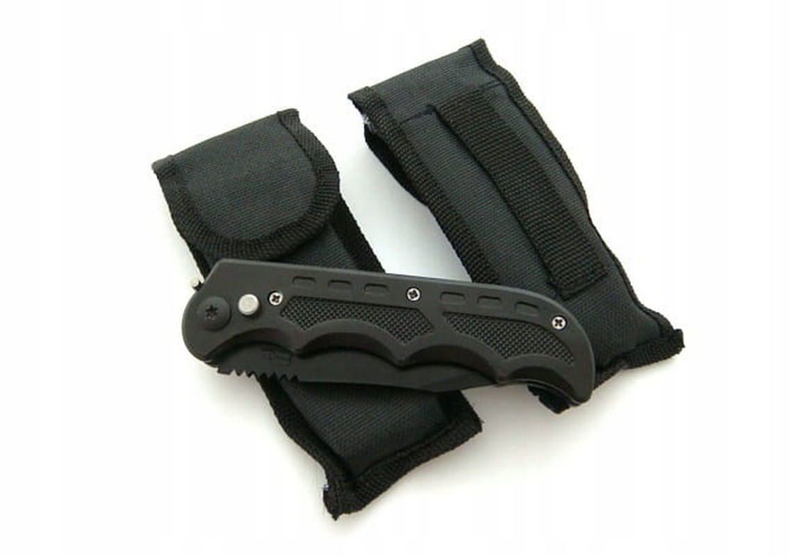 Нож имеет кнопочный замок. Нож поставляется в практичном чехле.