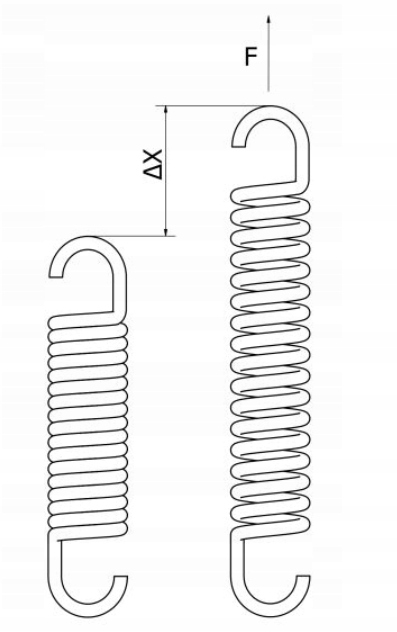 Сила «F» [кг], которую необходимо приложить к пружине, чтобы растянуть ее на длину «Δx» [см], рассчитывается по формуле: