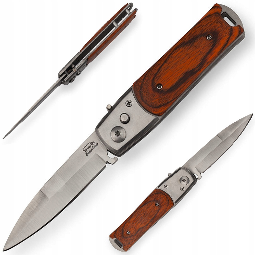 ✔️Молниеносный нож с выкидным лезвием имеет классическое лезвие с копьевидным профилем, изготовленное из высококачественной нержавеющей стали 420.