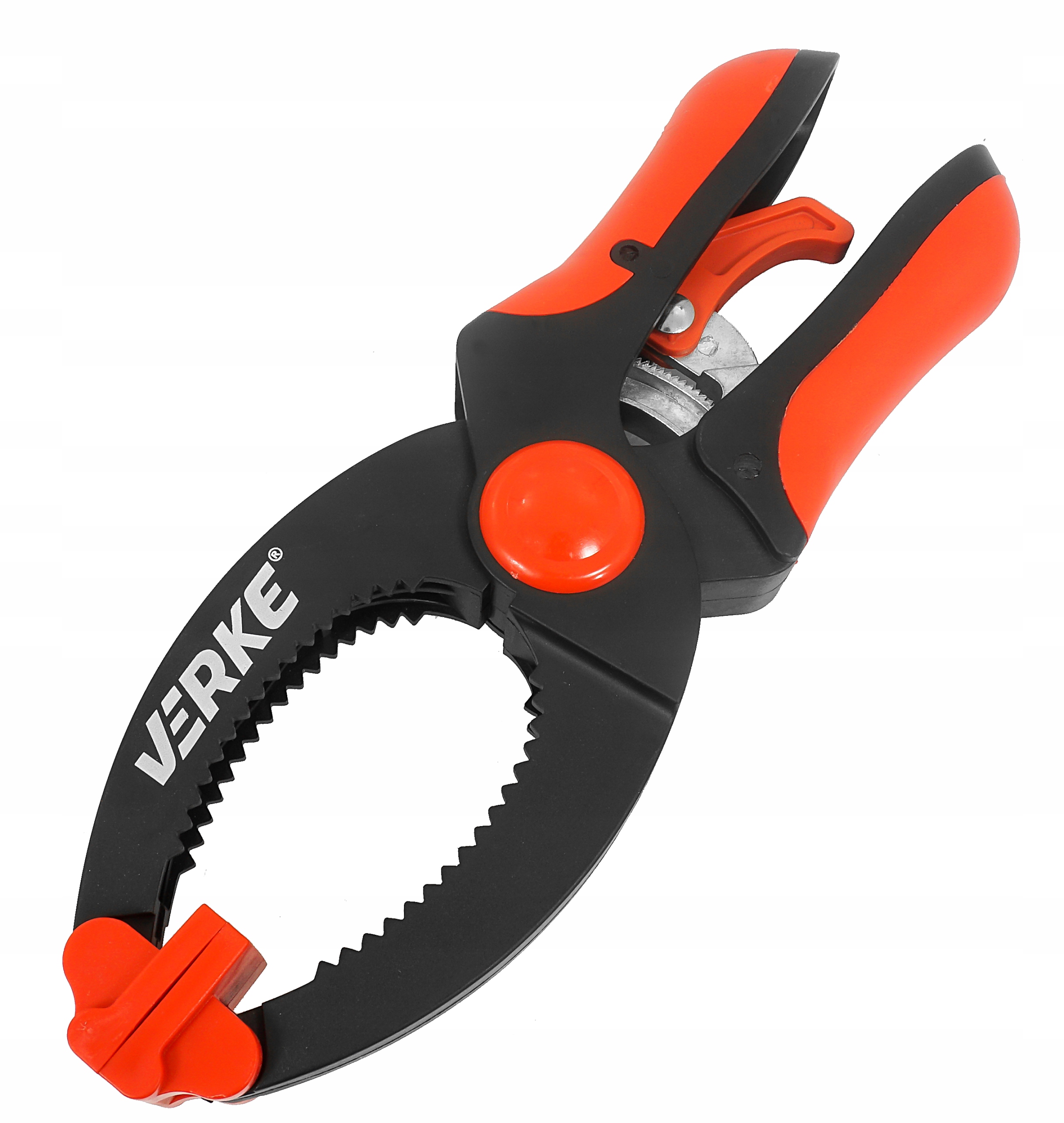 Пружинный зажим с храповым замком. Обеспечивает быстрое точечное крепление при склеивании и удержании различных элементов, например, при столярных и модельных работах.