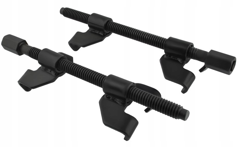 Сжиматели автомобильных пружин незаменимы при профессиональном обслуживании шасси. Адаптировано ко всем типам колонных и независимых пружин. Съемники работают с трещоткой 1/2" и ключом на 21 мм. Имеют мелко развитую резьбу, что облегчает работу под пружинной нагрузкой. Работа безопасна благодаря специально профилированным двуручным рукояткам. Надежное качество изготовления. .