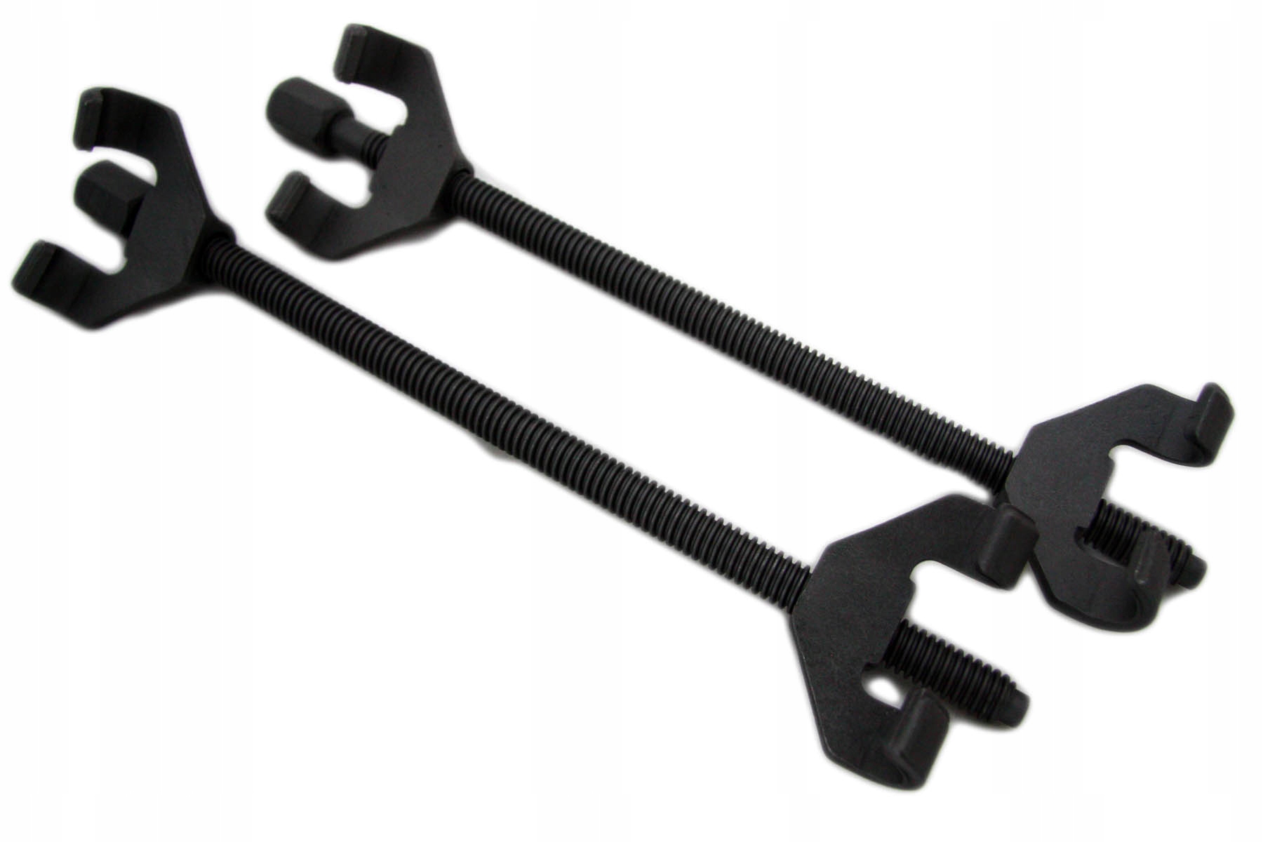 Комплект из 2 шт.сжимателей пружин 380 мм.Оснащены трапециевидной резьбой для облегчения работы при использовании ручного инструмента.Работают с приводным инструментом с головкой 1/2". Изготавливаются инструмент из высококачественной стали, что гарантирует высокую твердость и стойкость к истиранию.Усиленная конструкция резьбы экстрактора для обеспечения большей безопасности работы.