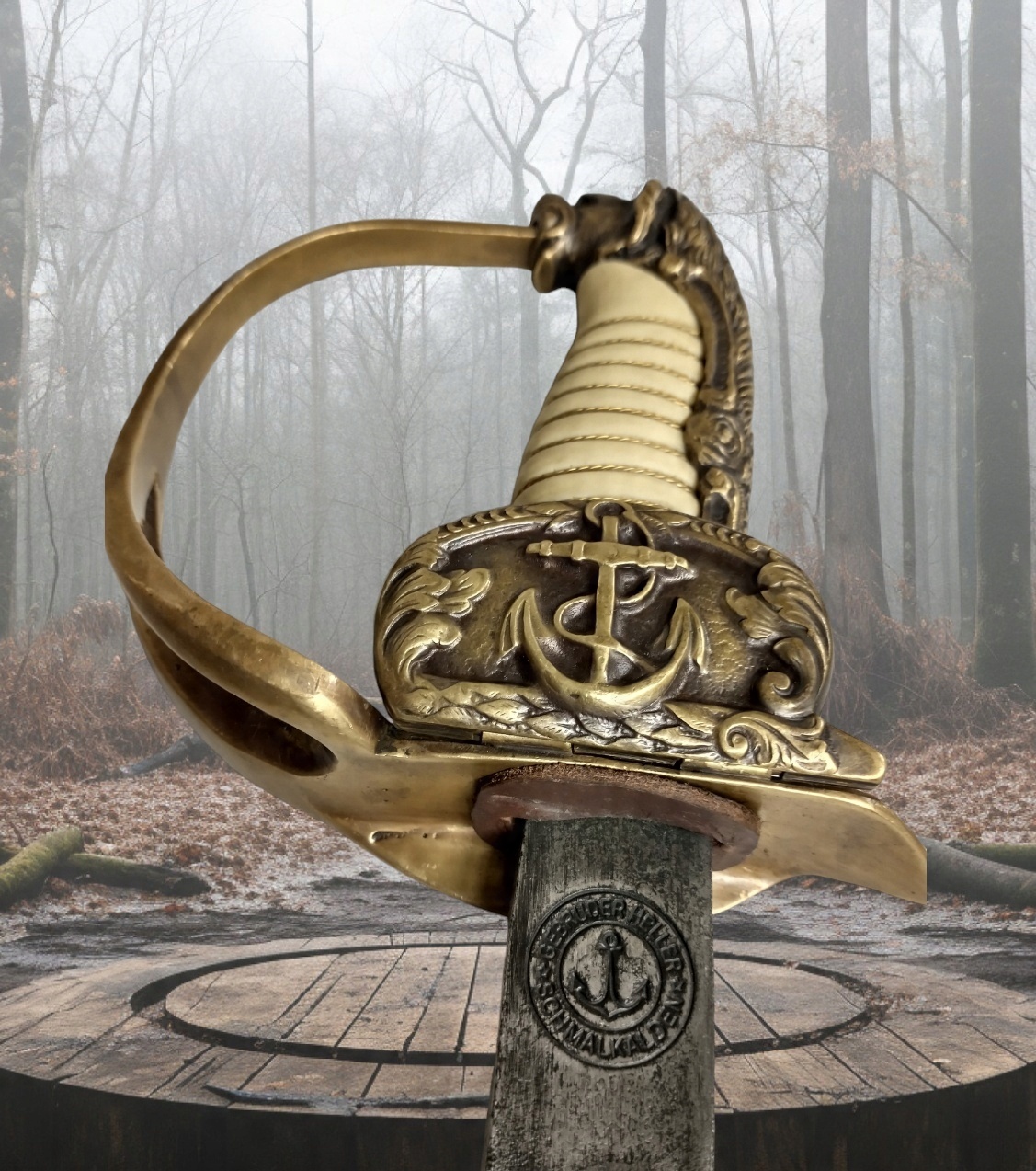 Красивая копия сабли прусского флота с подписью «Gebruder Heller Szmalkalden» в ножнах.