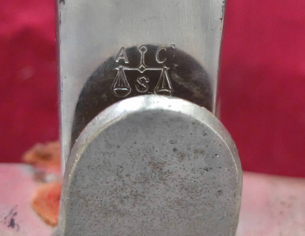Предмет виден на фотографиях. Лезвие не заточено и не заточено. Весь оригинальный хром сохранен. На пороге клинка имеется подпись производителя Alex Coppel Solingen — символ шкалы с буквами AC S.