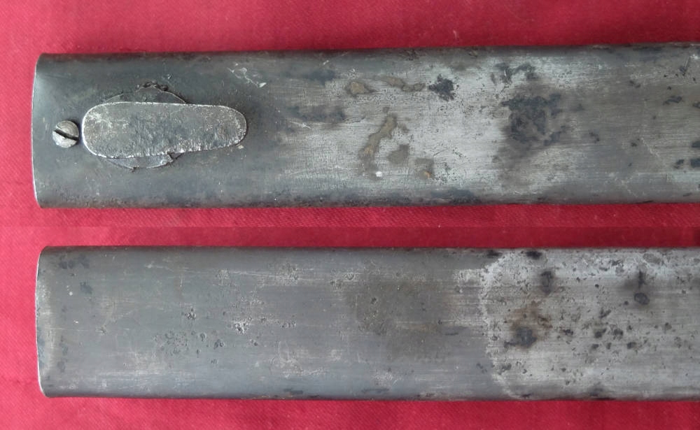 Ножны без отверстий, не помяты, есть лишь небольшие вмятины. Направляющая ножен функциональна и хорошо удерживает клинок.