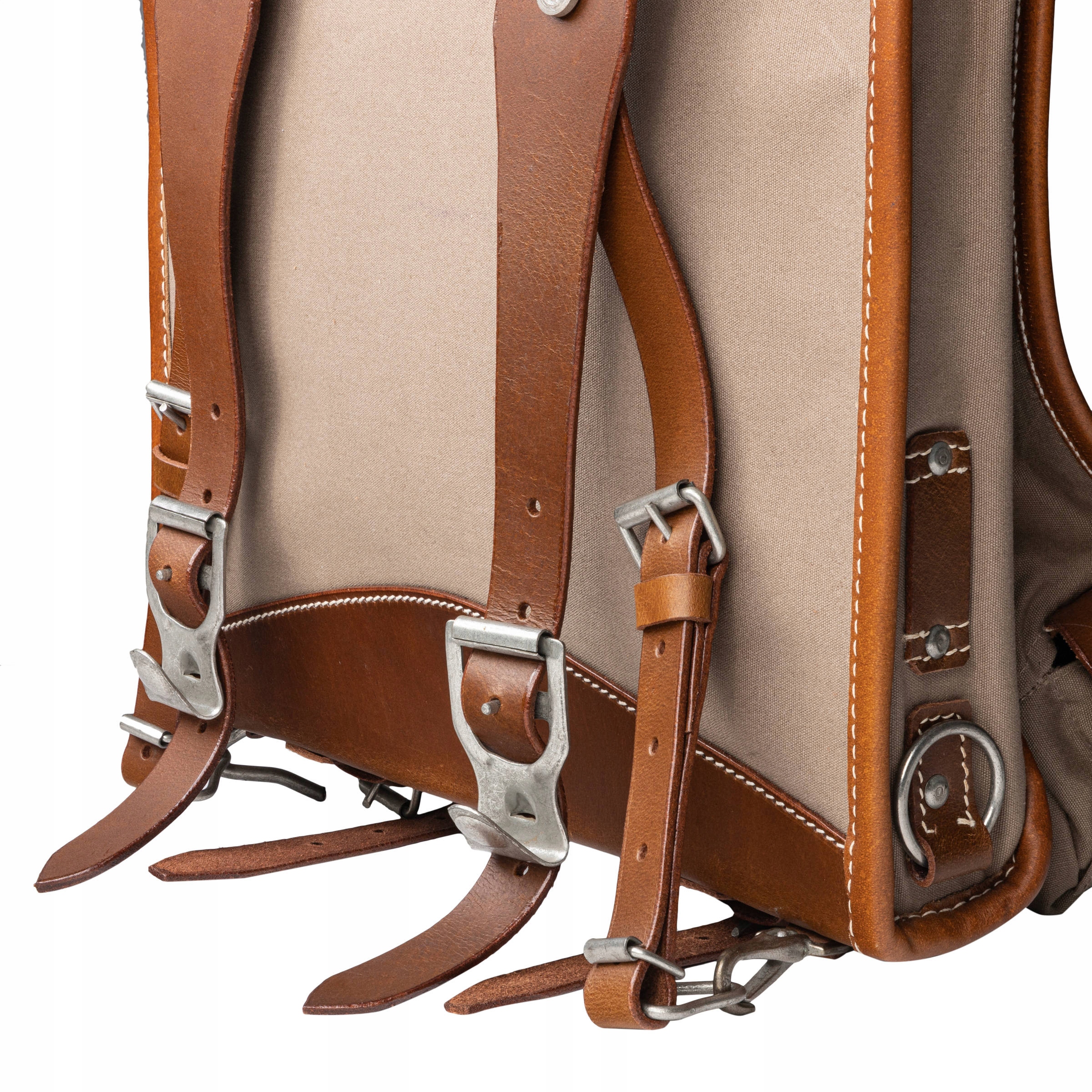 Идеальная копия немецкого рюкзака М16 первой войны — упрощенная версия М1895 без волос. Это экономичный вариант прически, представленный в 1916 году. Рюкзак жесткий, усилен деревянным каркасом, лямки, шнурки и лямки выполнены из натуральной кожи. Чехол с аксессуарами для Zelta, видимыми на фотографиях, в предложение не входит. Реплика производства Schipperfabrik.