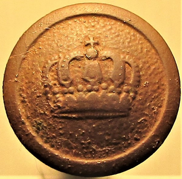 - На аверсе изображена прусская королевская (!!!) закрытая корона, расположенная на зернистом фоне, на Край пуговицы одинарный, выпуклый. В следующем варианте пуговицы тулья занимала всю лицевую сторону. Оба варианта пуговиц использовались до 1919 года. Интересный факт: Пуговица самая. вероятно, представляет собой королевскую корону Вильгельма II Гогенцоллерна, созданную в 1888 году.