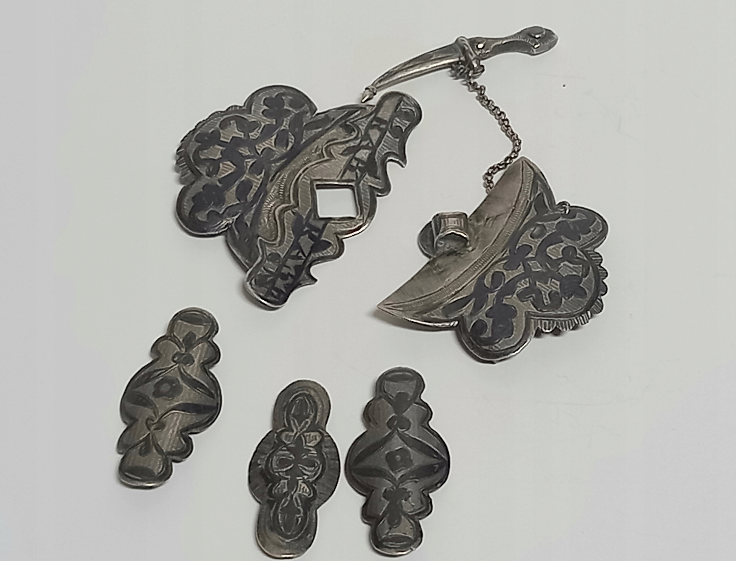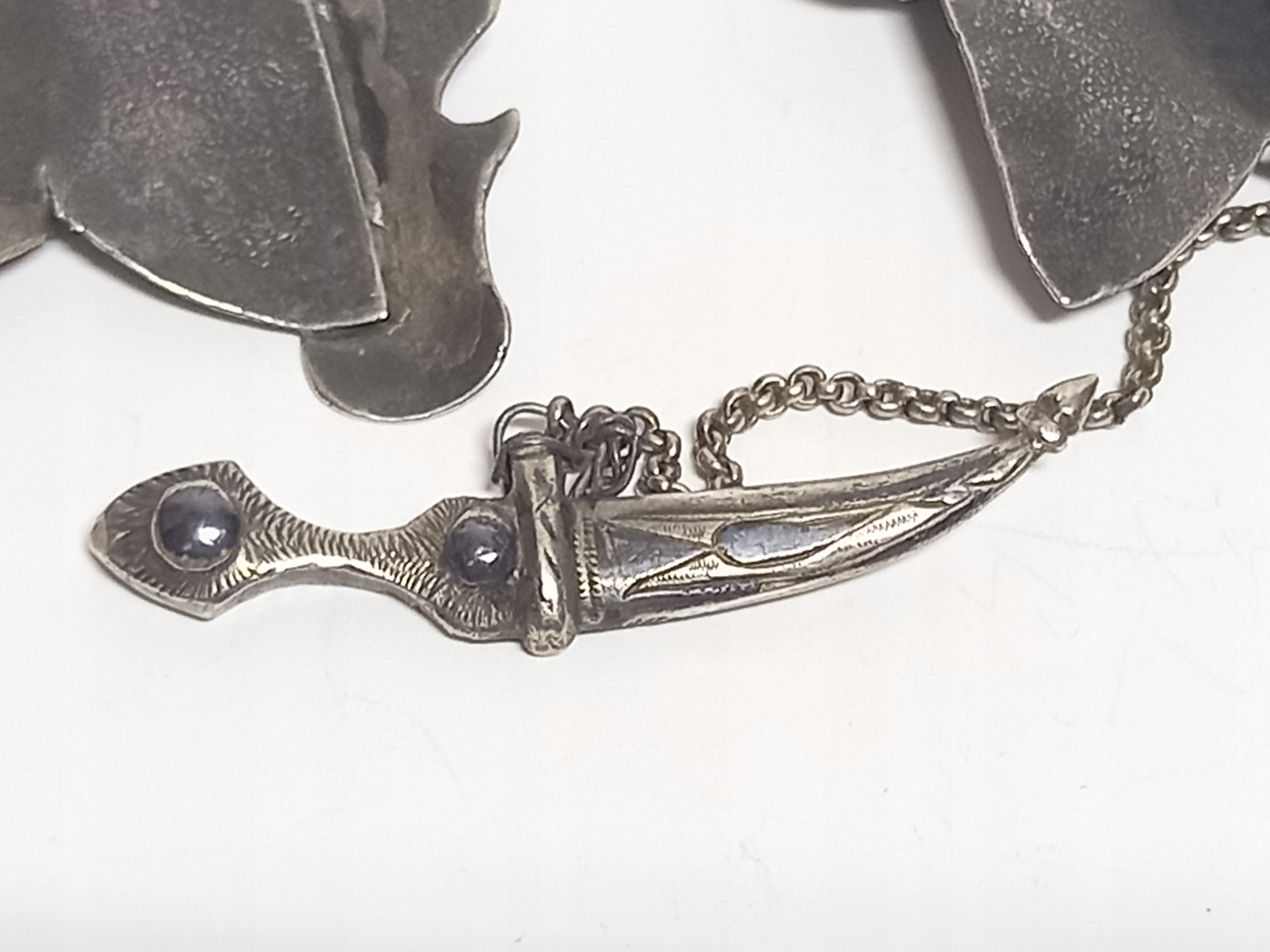Две части пряжки скреплены небольшим ножиком в форме кавказского кинжала.