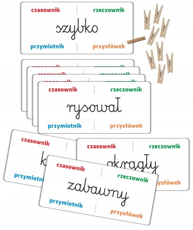 Клип-задания «Части речи» (32 карточки + 12 роликов)