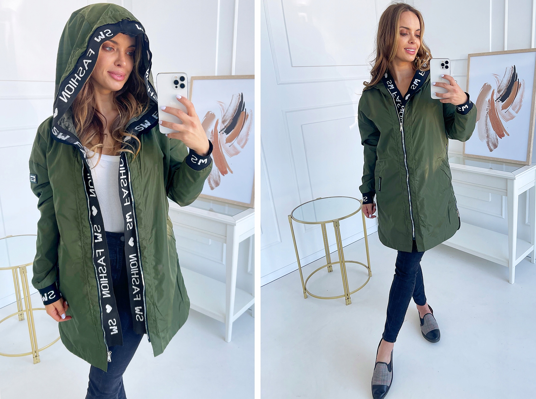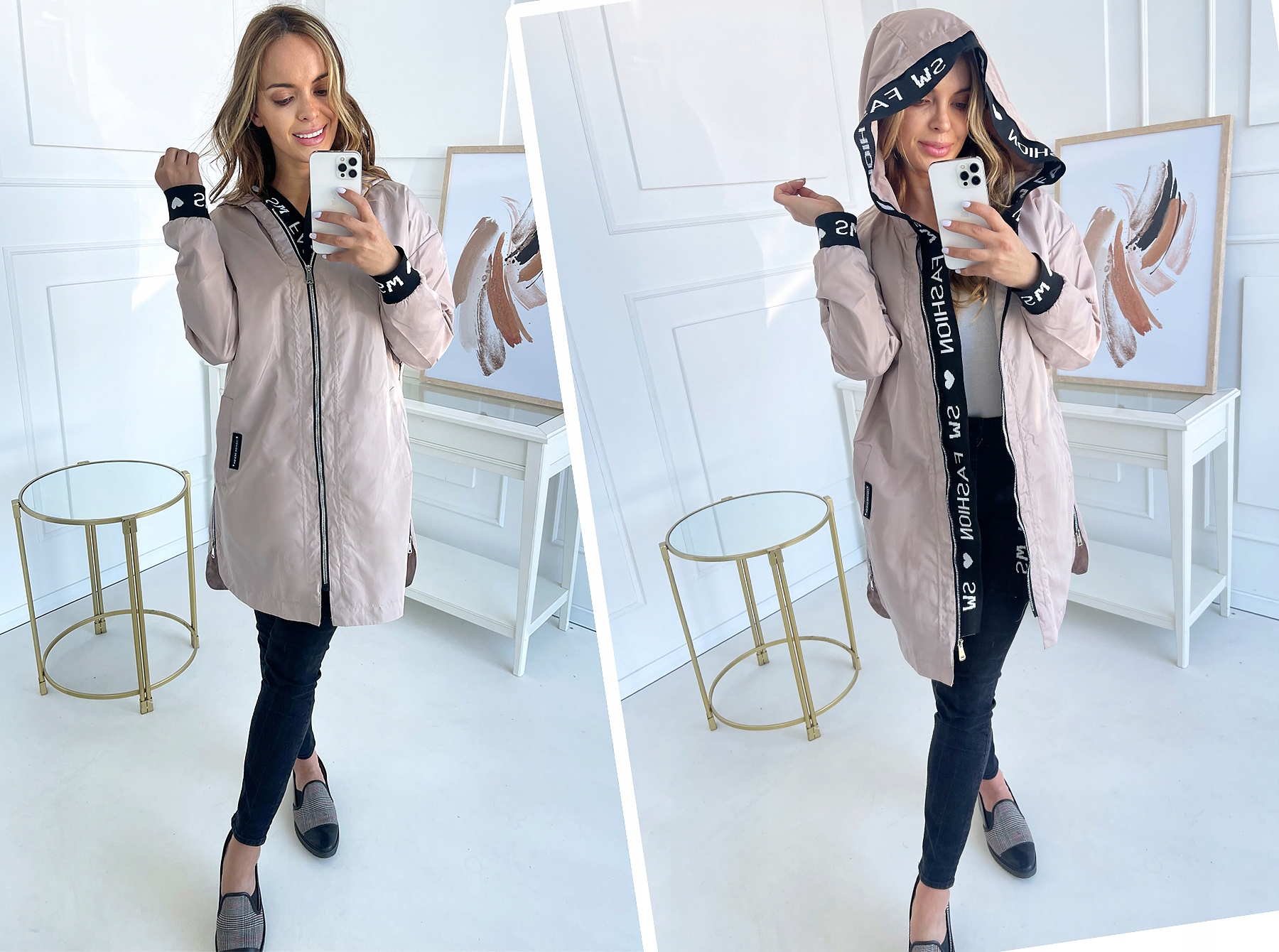 - Самая модная трикотажная отделка по молнии, капюшону и рукавам.