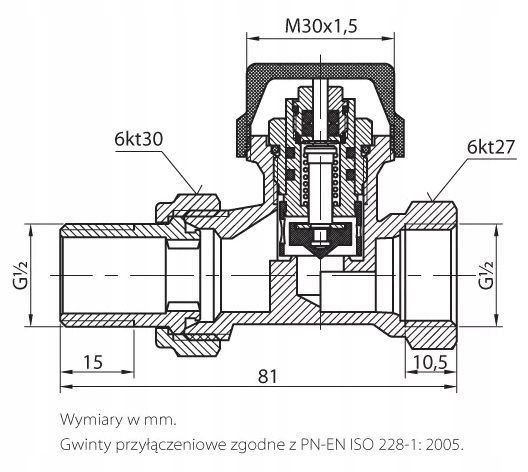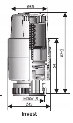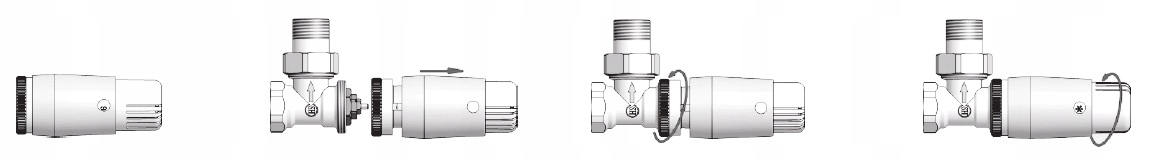 Термостатическую головку монтируют на вкладыш клапана с помощью гайки с резьбой М30х1,5, не забывая установить ручку установки температуры на «6». Затяните крепежную гайку вручную до упора. Головка не должна иметь люфта относительно корпуса клапана. Для обеспечения правильной работы головку следует устанавливать таким образом, чтобы обеспечить свободный поток воздуха вокруг датчика, расположенного в ручке головки. Поэтому не закрывайте голову оконными шторами или занавесками, так как это может привести к неправильному измерению температуры в помещении.