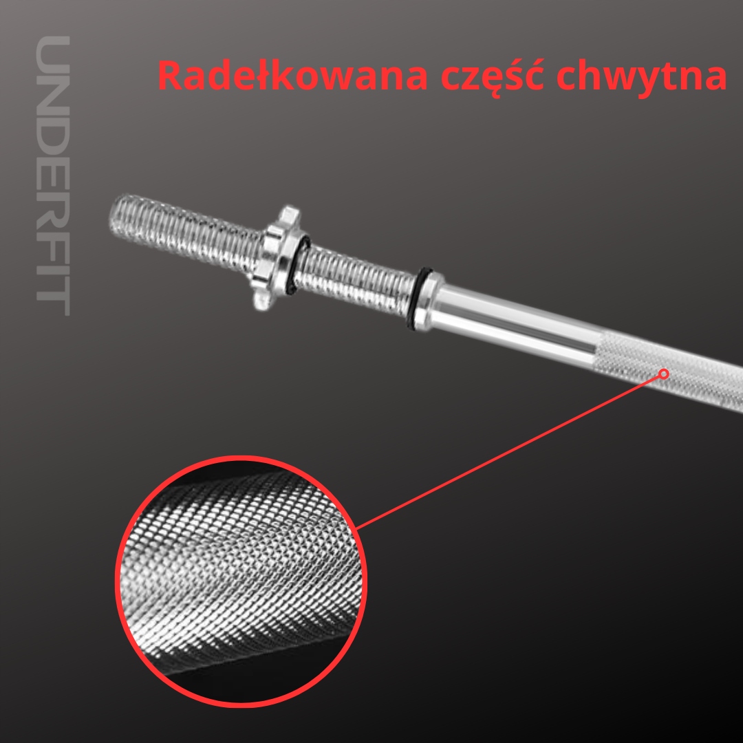 Прямой гриффин с нитью и подставками звездных терминалов 120 см - идеальное оборудование для проведения профессиональных силовых тренировок. Гриффин был изготовлен из хромированной стали, обеспечивая силу и комфорт упражнений, не опасаясь образования солнца или деформаций. Поддержание своего появления в течение очень длительного периода использования гарантирует процесс хрома, который является лучшей защитой от ржавчины. Размеры оборудования были уточнены таким образом, что оно максимально эффективно. Вы можете работать над своей фигурой с большим весом без страха! Чтобы обеспечить некоторое и удобное удержание, ее захватывающая часть тщательно упала. Штанга не проскальзывает, и вы можете уделять все свое внимание правильному упражнениям. Безопасность во время тренировки также гарантируется специальными винтовыми зажимами, которые гарантируют стабильное расположение веса на шее во время упражнений.