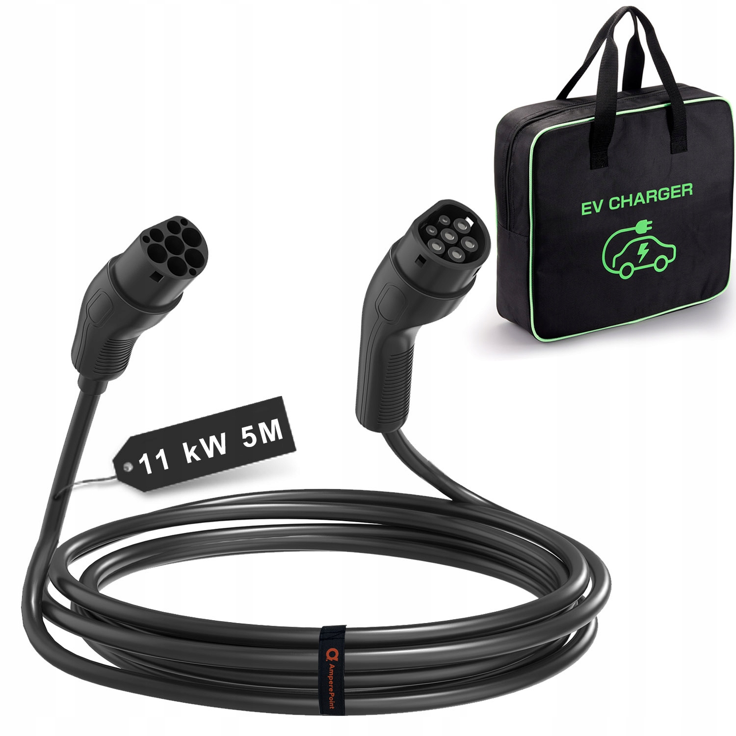 Прямий кабель типу 2 для заряджання електромобіля 16 A/11 кВт 5 м із сумкою