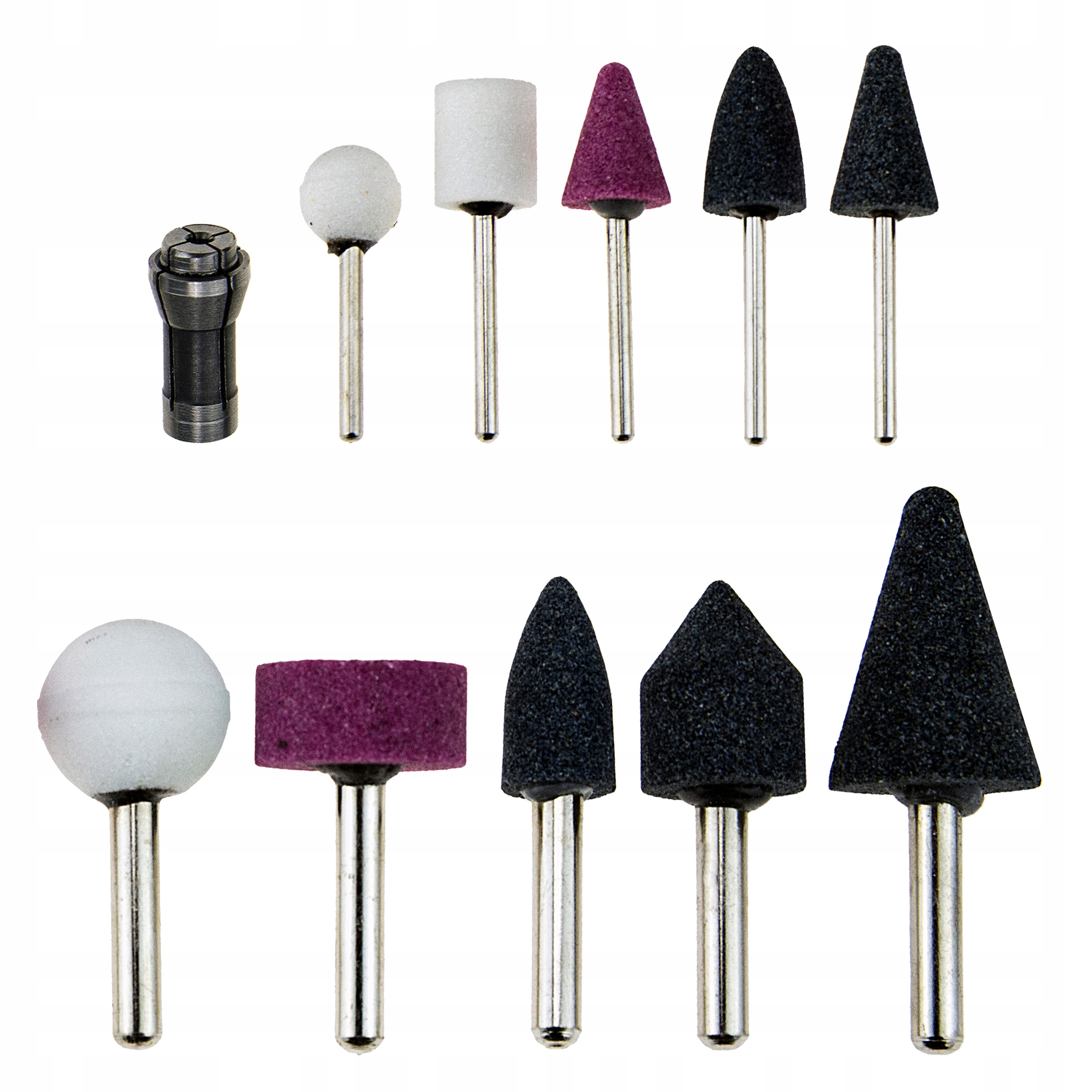 Комплект STT-R11 состоит из пневматической прямошлифовальной машины STT-R1 компании STIX Tool, поставляемой с набором аксессуаров в пластиковом кейсе. В комплект поставки входят 10 насадок - шлифовальные камни и дополнительный переходник 3 мм (1/8") - крепежный зажим для насадок с диаметром хвостовика 3 мм ( болгарка имеет сменный хомут 6 мм). В комплект также входят ключи для держателя болгарки, быстроразъемное соединение для подсоединения шланга сжатого воздуха и Бутылка емкостью 10 мл, содержащая масло для пневматических инструментов.