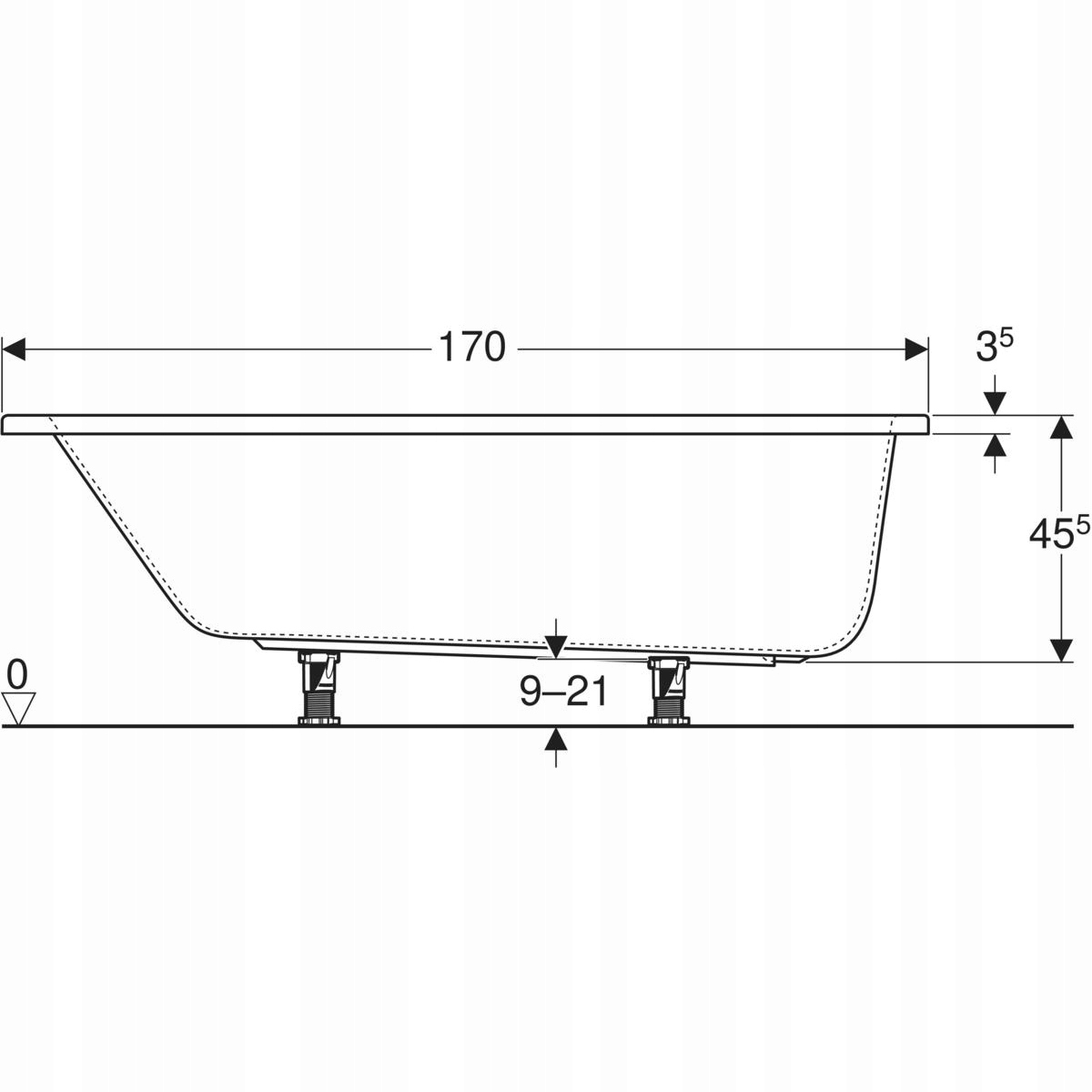 Прямоугольная ванна Geberit Perfect 170 x 75 см