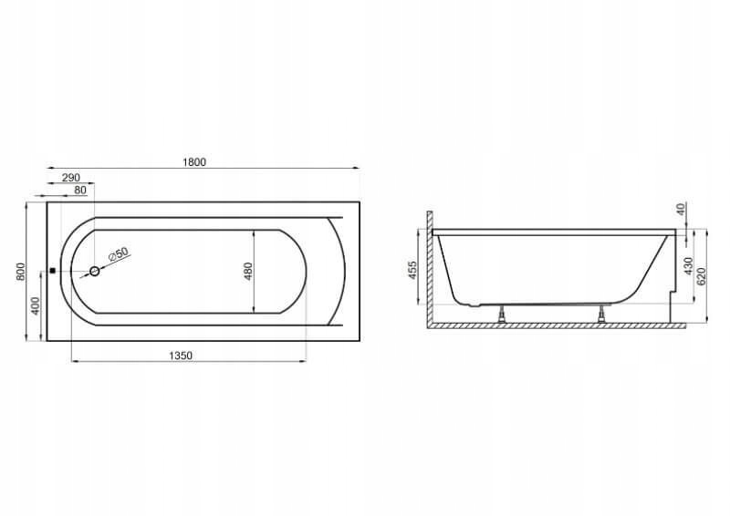 Ванна Polimat Classic прямоугольная 180х80 см + сифон