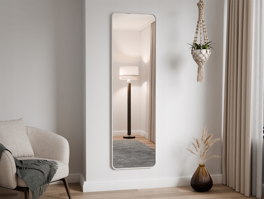 Прямоугольное зеркало в белой рамеИдеально подойдет для ванной, гостиной, холла, гардеробной, магазина и других помещений.