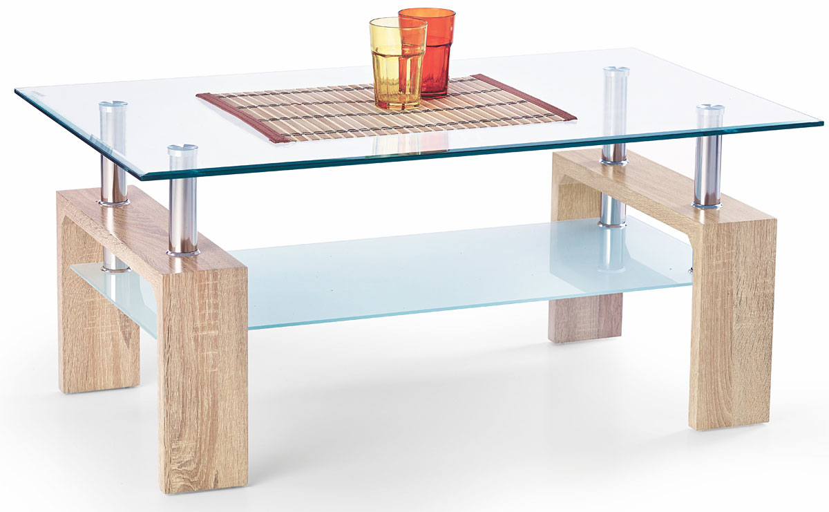 ПРЯМОКУТНИК Скляна ЛАВА КАВОВИЙ СТОЛ - ДУБ СОНОМА