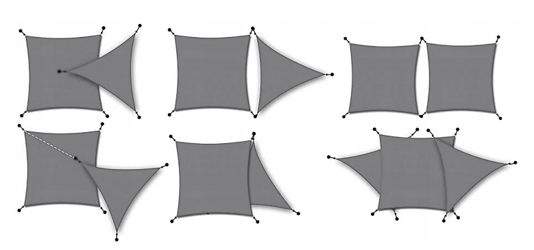 - Благодаря вогнутой форме парусов тента нагрузка передается на внешние углы, так не возникает неприглядных складок и провисаний ткани.