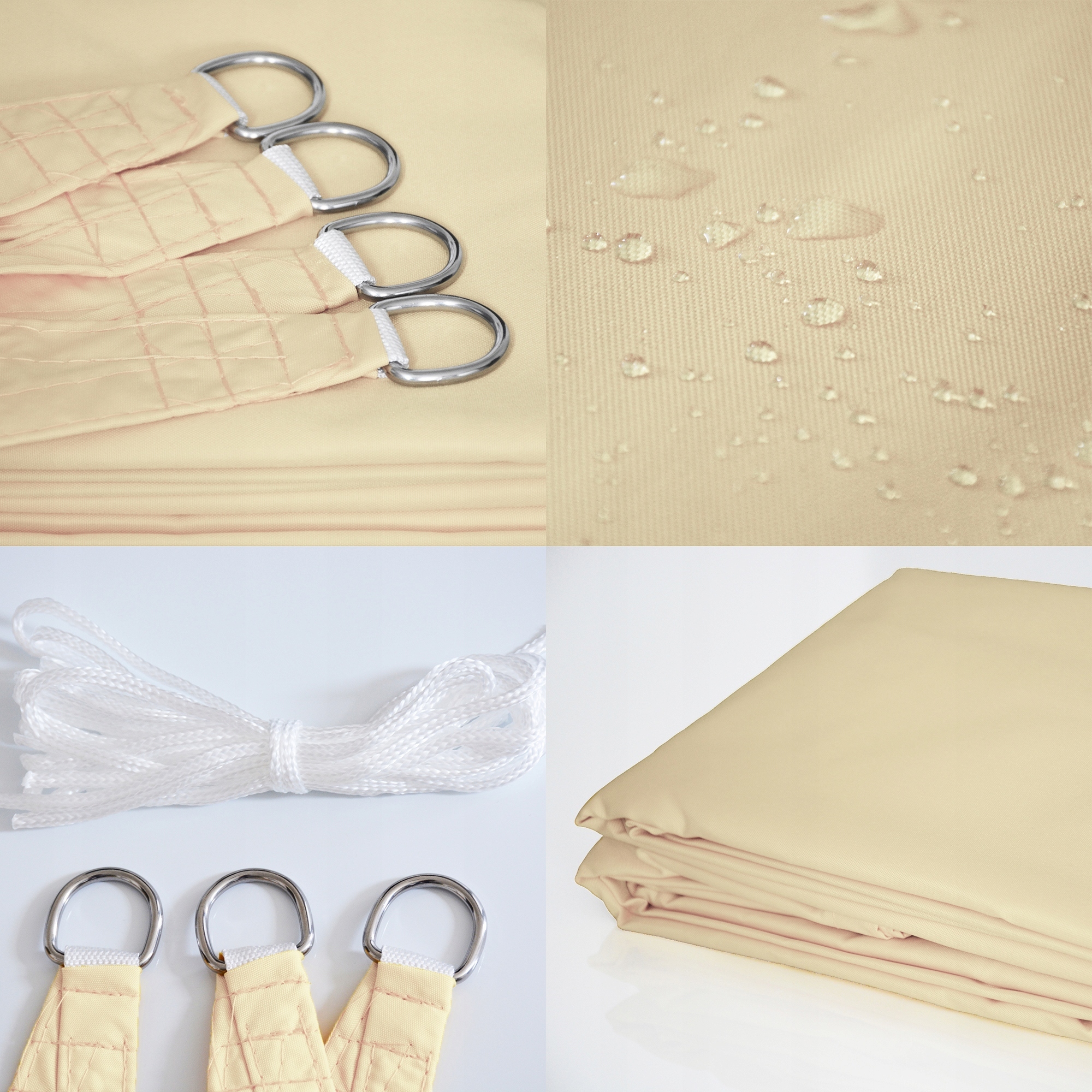 Вы можете установить парус в соответствии с вашими потребностями - вы можете повесить его горизонтально, вертикально, под любым углом. Все элементы и края прошиты прочной нитью, благодаря чему парус будет оставаться в любом положении и устойчив к погодным условиям.