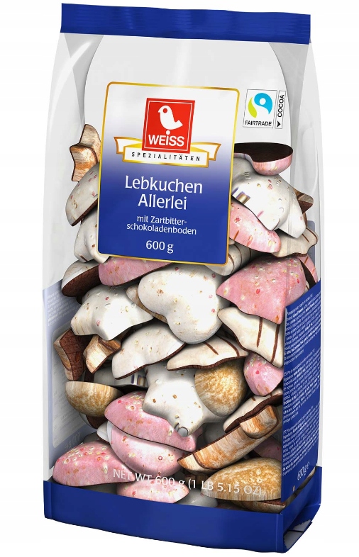 Weiss Allerlei Lebkuchenmischung (piern-czek-miesz) 600г - Рождественские пряники Weiss Christmas Eve в различных формах - звезды, сердечки, крендельки в темном шоколаде. Выпекается по традиции. Не ждите до последней минуты, делайте покупки прямо сейчас, чтобы насладиться праздником в полной мере.