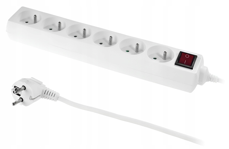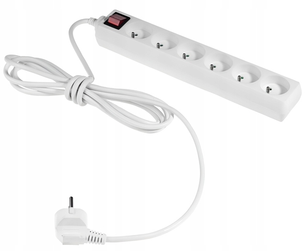 PRZEDŁUŻACZ LISTWA 6 GNIAZDA 3 metry Z WŁĄCZNIKIEM BIAŁY PLAST-ROL POLSKI