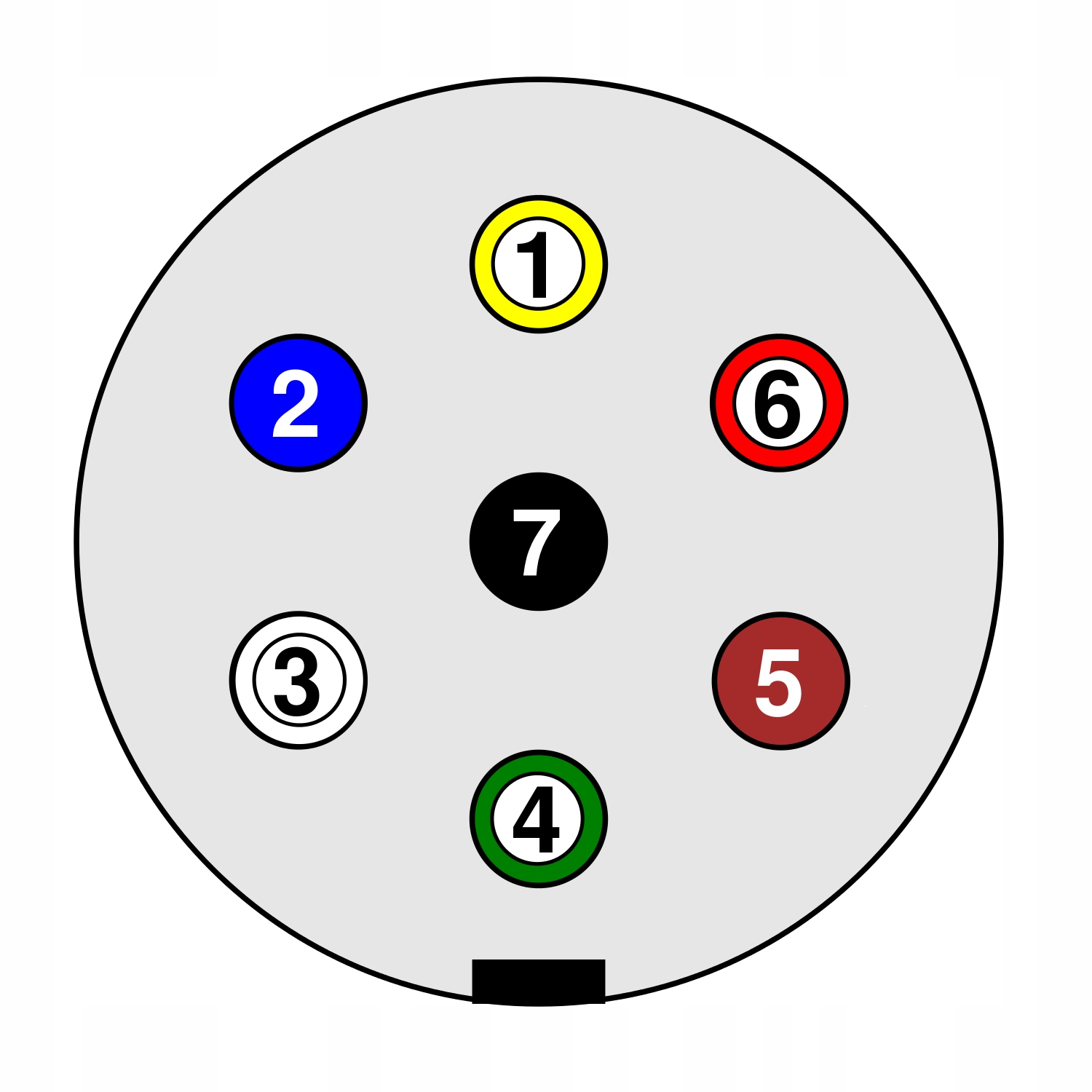 Схема 7-контактного разъема 12В: