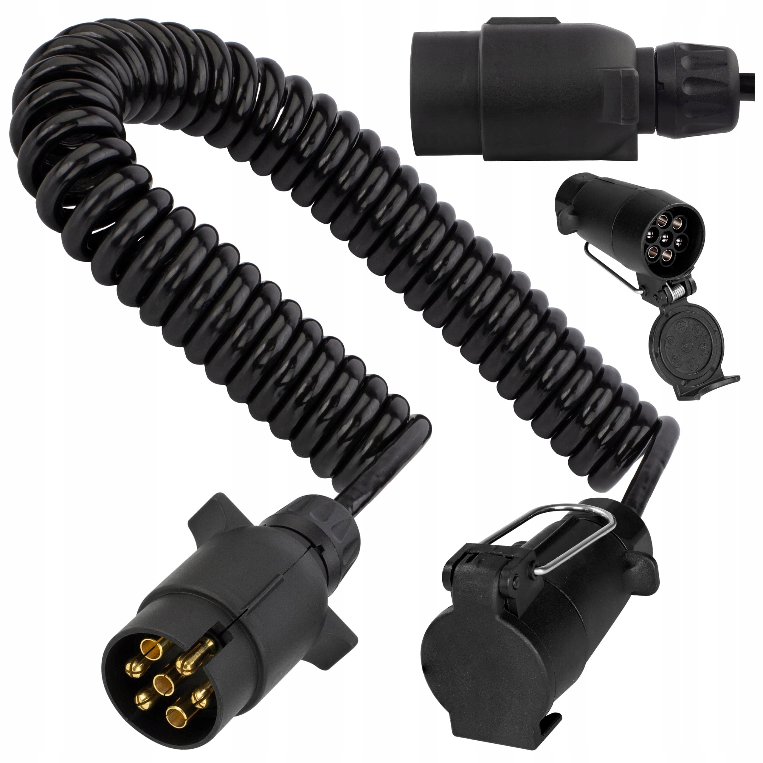 - Тип: Спиральный удлинитель для прицепов, 7-жильный с пластиковыми 7-контактными разъемами