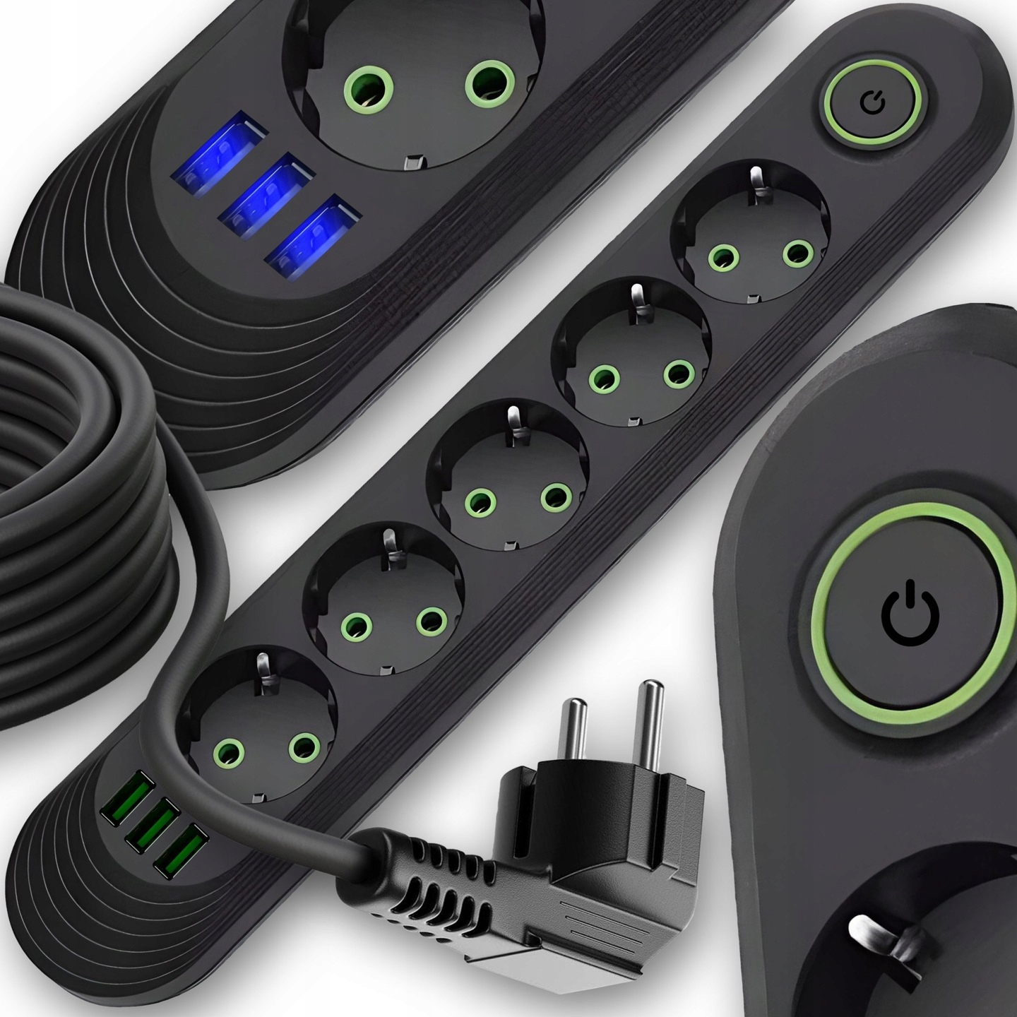УДЛИНИТЕЛЬ USB 5М Удлинитель питания 5 РОЗЕТОК 3 КНОПКИ USB ДЛЯ ЗАЩИТЫ от ПЕРЕНАПРЯЖЕНИЯ