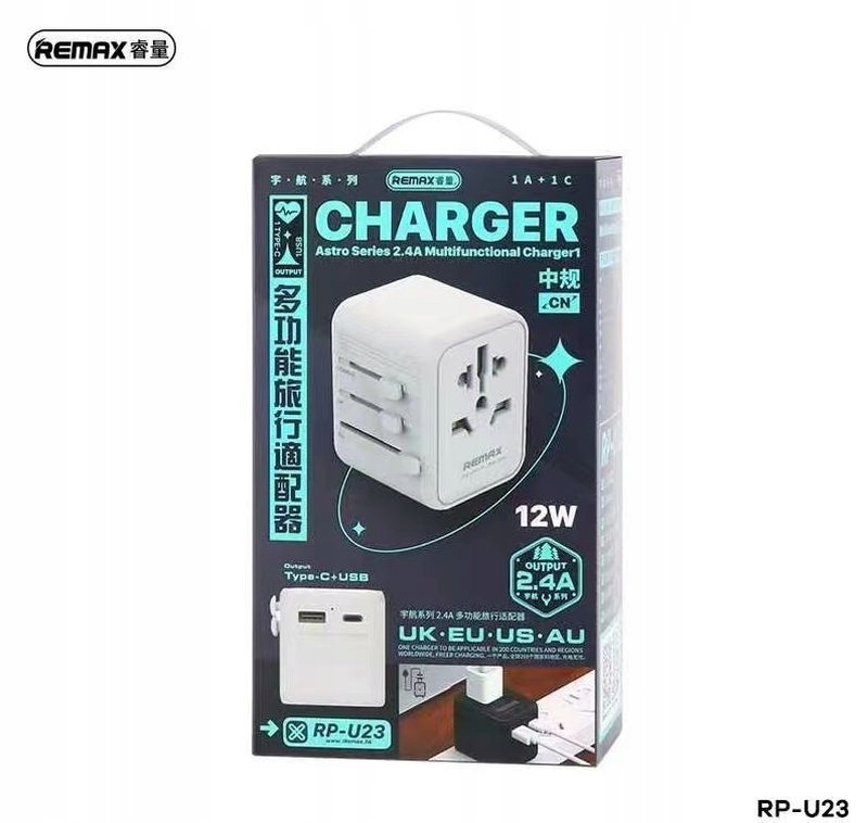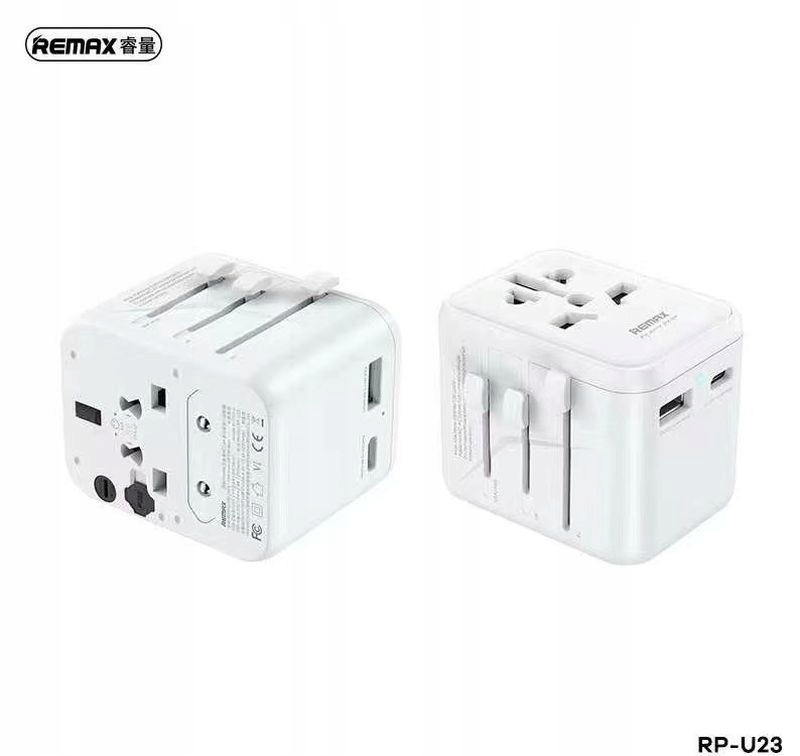 Новый адаптер/сетевой адаптер, позволяющий подключать электрические устройства со вилками из разных стран к используемым во многих странах электрическим розеткам, а также универсальное зарядное устройство с двойным USB + USB типа C от известной компании Remax.