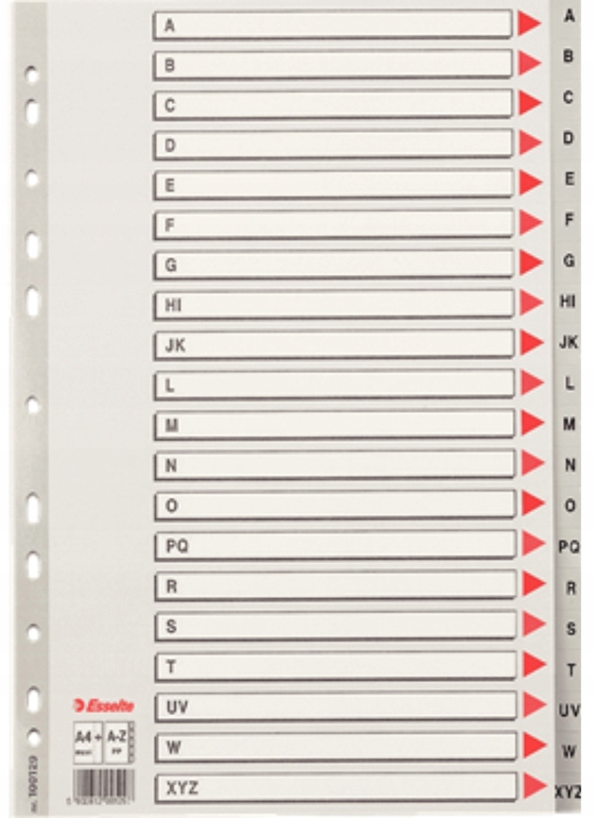 PRZEKŁADKI PLASTIKOWE A4 A-Z do segregatora ESSELTE PRZEKŁADKI alfabetyczne