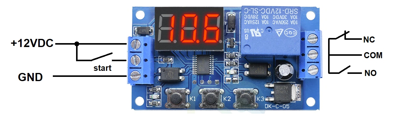 Przekaźnik czasowy opóźnienie wyłączenia 12VDC