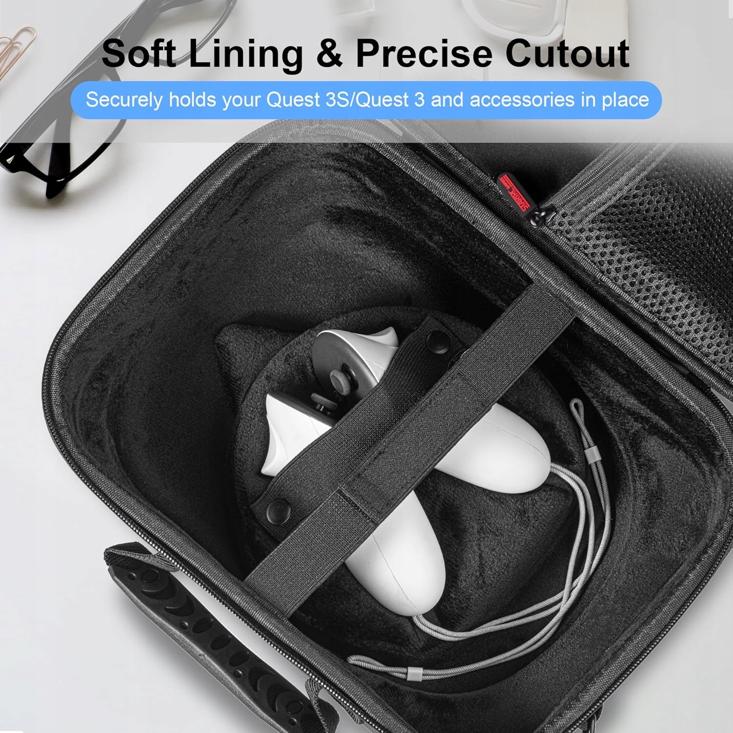 Большая сумка для переноски Quest 3S/Quest 3: Эта сумка специально разработана для гарнитуры Meta Quest 3S/Quest 3 VR и других аксессуаров. Совместим со всеми головными ремнями сторонних производителей, подходит для BOBOVR S3 Pro и аккумуляторного головного ремня Kiwi Design.